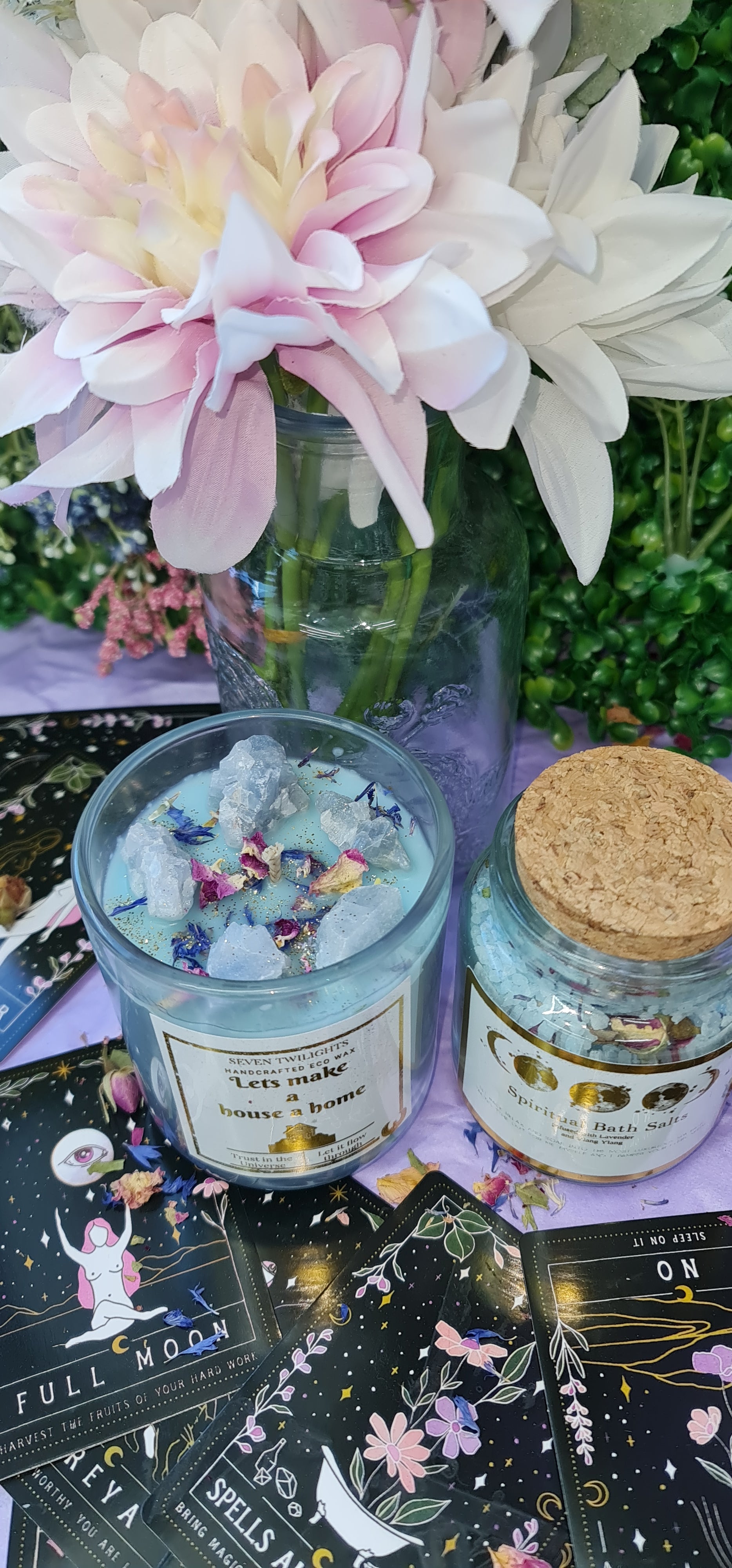 A beautiful spiritual set to gift a friend or family when moving into their new home. What better way to cleanse your new space than with a candle and a spiritual bath